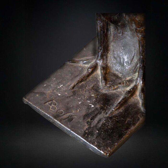 Élégante sculpture en bronze à patine brune représentant un oiseau stylisé, probablement un échassier, au modelé sobre et puissant.