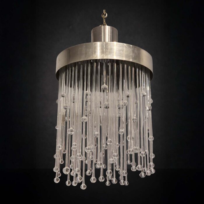 Superbe lustre de forme tambour attribué à la prestigieuse maison Baccarat, symbole du savoir-faire français en matière de cristal d’exception.