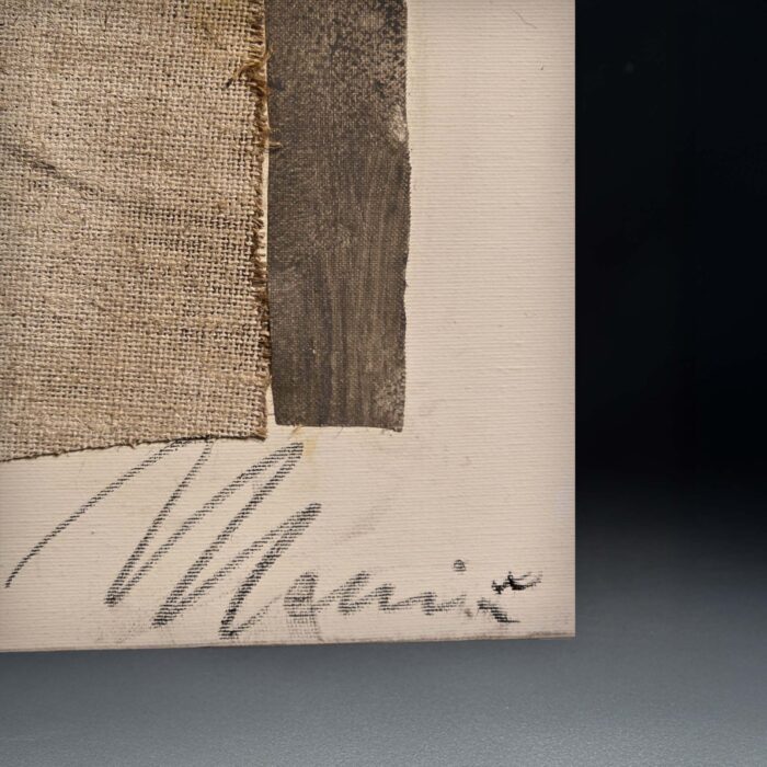 Rare œuvre d’Edoardo Menini, datée de 1955, s’inscrivant dans une recherche plastique à la croisée de la peinture et de l’assemblage textile.