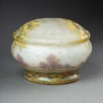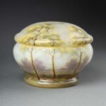 Cette pièce illustre parfaitement l’esthétique de la période 1900 : sensibilité à la nature, recherche d’harmonie entre forme et décor, et maîtrise absolue du verre comme matière vivante. Par sa douceur chromatique et son raffinement pictural, cette boîte à bijoux incarne toute la grâce et la poésie du style nancéien.