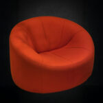 Ce modèle se distingue par ses lignes enveloppantes et généreuses, caractéristiques du travail de Paulin, où la forme épouse naturellement le corps. Le dessin tout en courbes, sans arêtes, crée une silhouette douce et sculpturale, à la fois minimaliste et immédiatement reconnaissable.