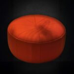 L’ensemble est habillé d’un textile rouge profond, vibrant et élégant, mettant en valeur les volumes tout en apportant une présence visuelle forte. Le fauteuil offre une assise particulièrement confortable grâce à sa structure basse et son galbe étudié, tandis que le repose-pied complète parfaitement l’expérience lounge.