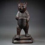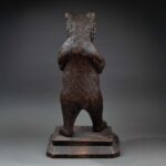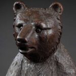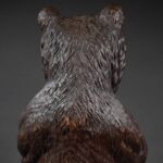 Majestueuse sculpture d’un ours debout tenant un panier, entièrement réalisée en bois sculpté à la main, probablement dans la région de Brienz, en Suisse, réputée dès le XIXᵉ siècle pour ses sculptures animalières naturalistes.
