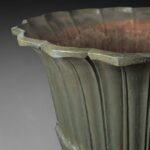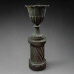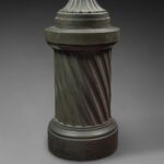 Le bronze, à la patine profonde et nuancée, confère à la pièce une présence monumentale et intemporelle. La colonne, d’un dessin sobre et dynamique, prolonge la verticalité du vase dans un mouvement hélicoïdal typique du goût des années 1930.